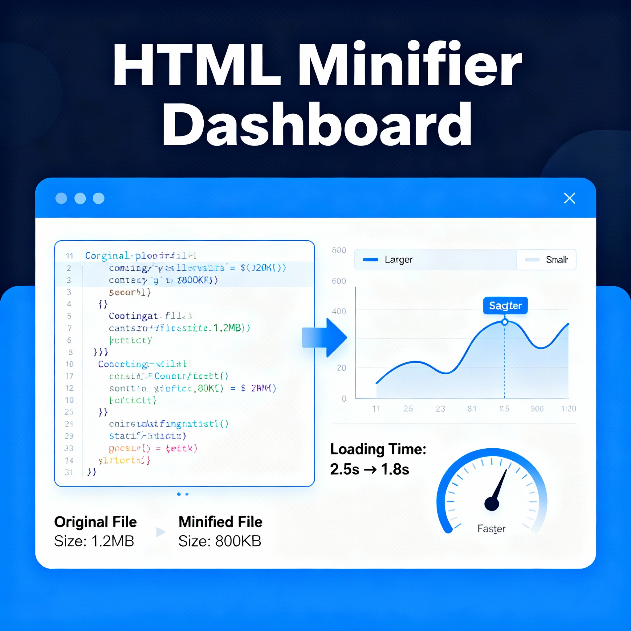 An HTML minifier is a web development tool or online service that compresses HTML code by removing unnecessary characters